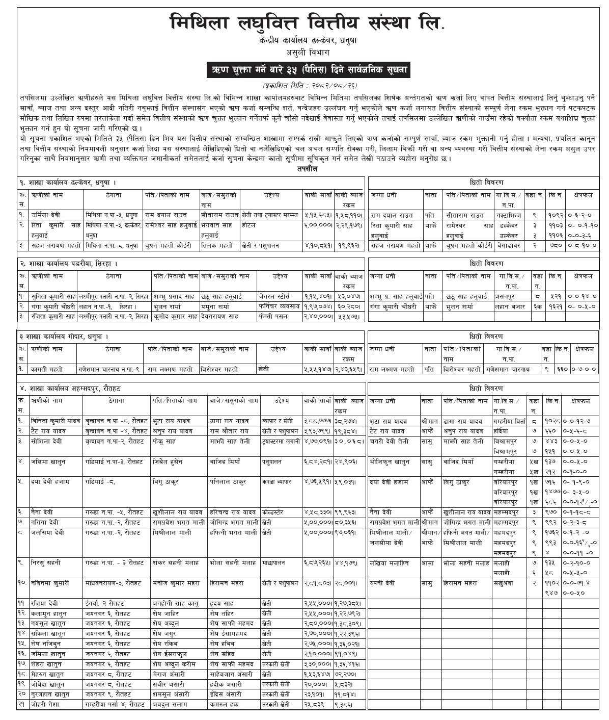 ऋण चुक्ता गर्ने वारे ३५ दिने सूचना : Download